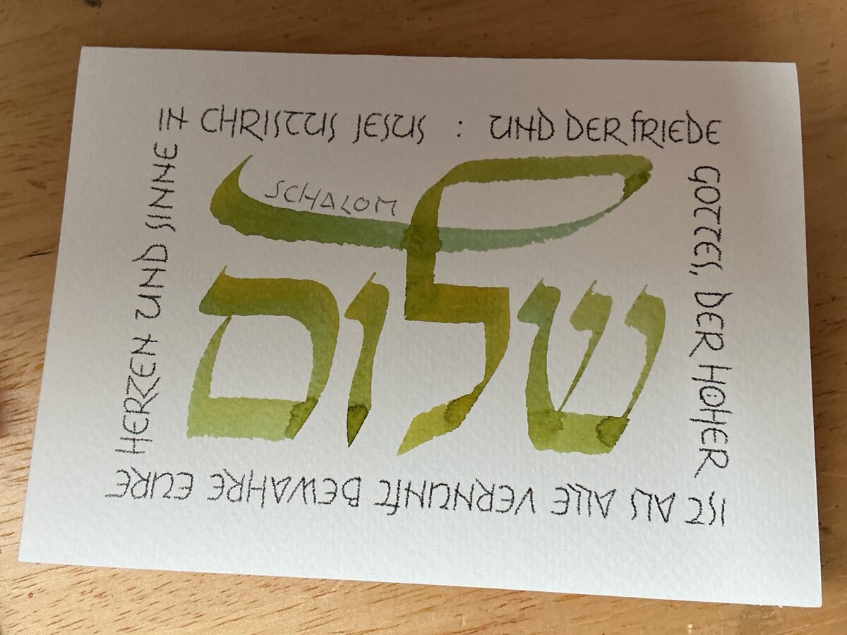 Der größte Teil der Bibel ist ursprünglich in Hebräischer Sprache und Schrift geschrieben. Das ist Grund genug diese schöne Schrift als Kalligrafie zu gestalten. Weil das Wort Gottes, die Bibel, einen so großen Stellenwert für sie hat, sind hebräische Kalligrafie unter Juden weit verbreitet und es gibt große Künstler unter den hebräischen Kalligrafen.
